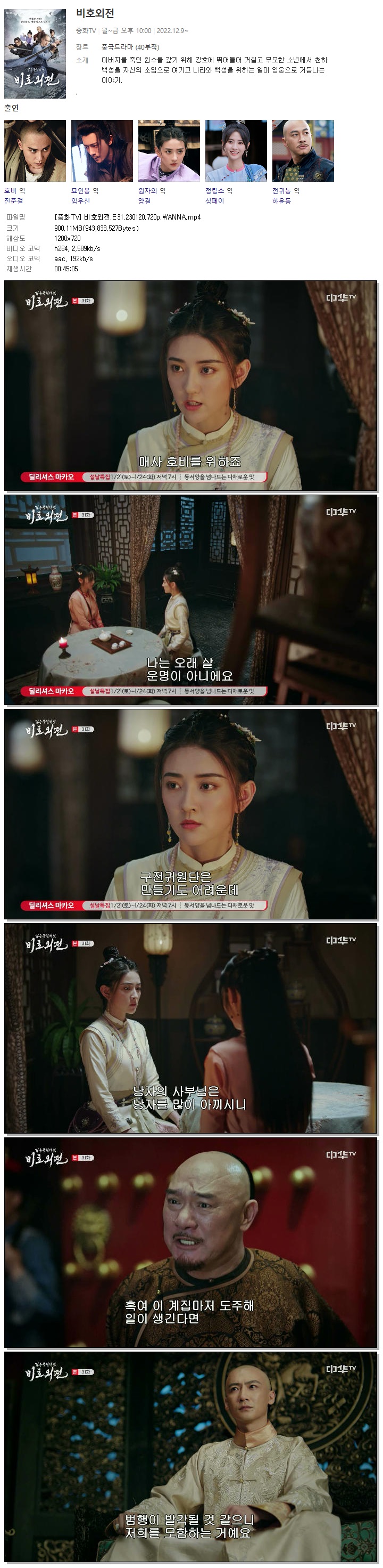 | [중화TV] 비호외전.E31.230120.720p.WANNA.mp4 | 900.1 M | 00:45:05 | 1280x720 |