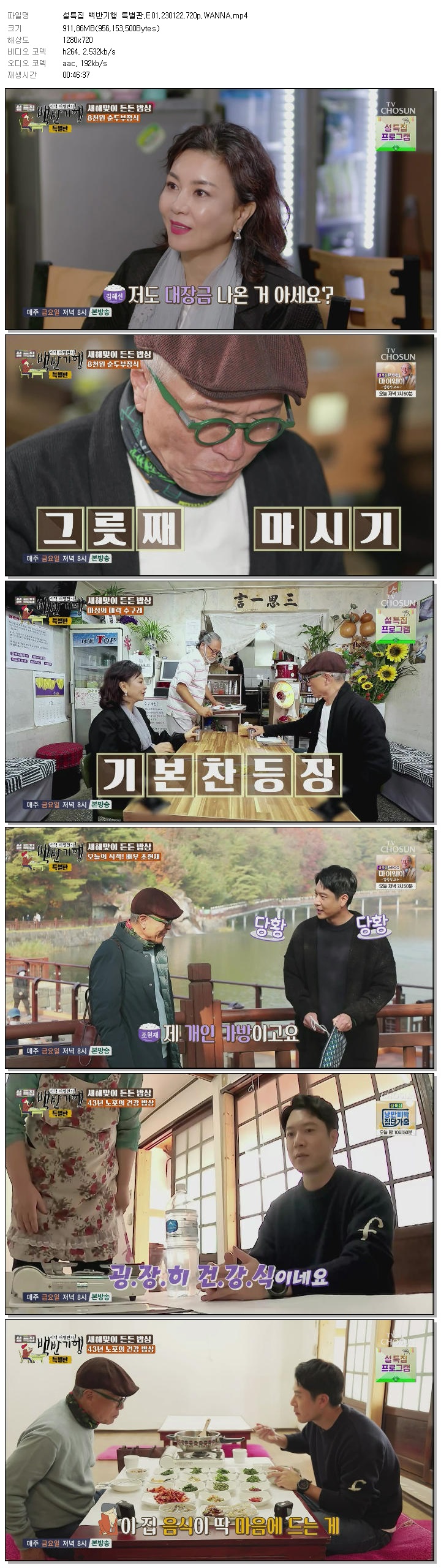 | 설특집 백반기행 특별판.E01.230122.720p.WANNA.mp4 | 911.9 M | 00:46:37 | 1280x720 |