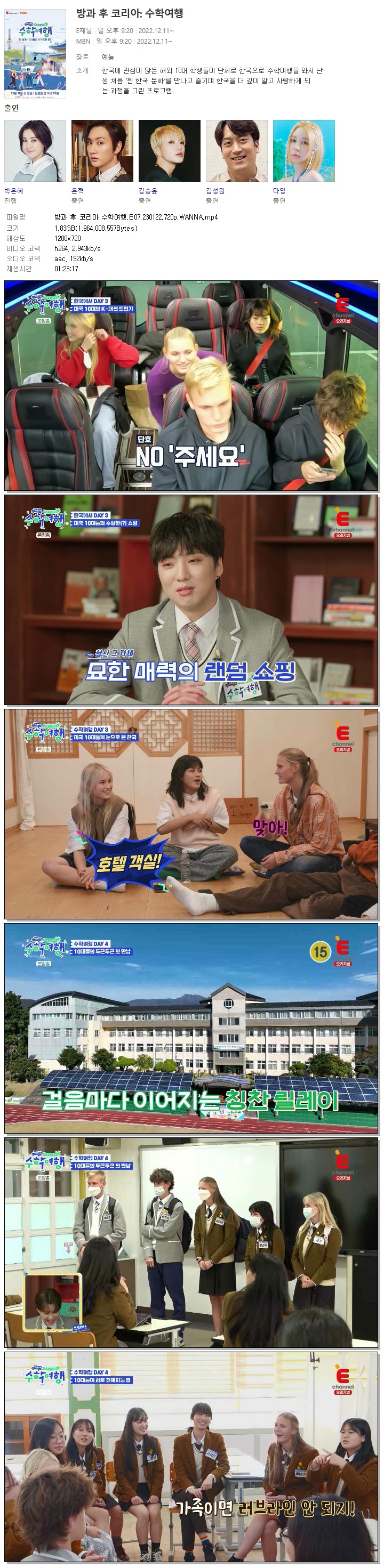 방과 후 코리아 수학여행.E07.230122.720p.WANNA.mp4 1.8 G 01:23:17 1280x720