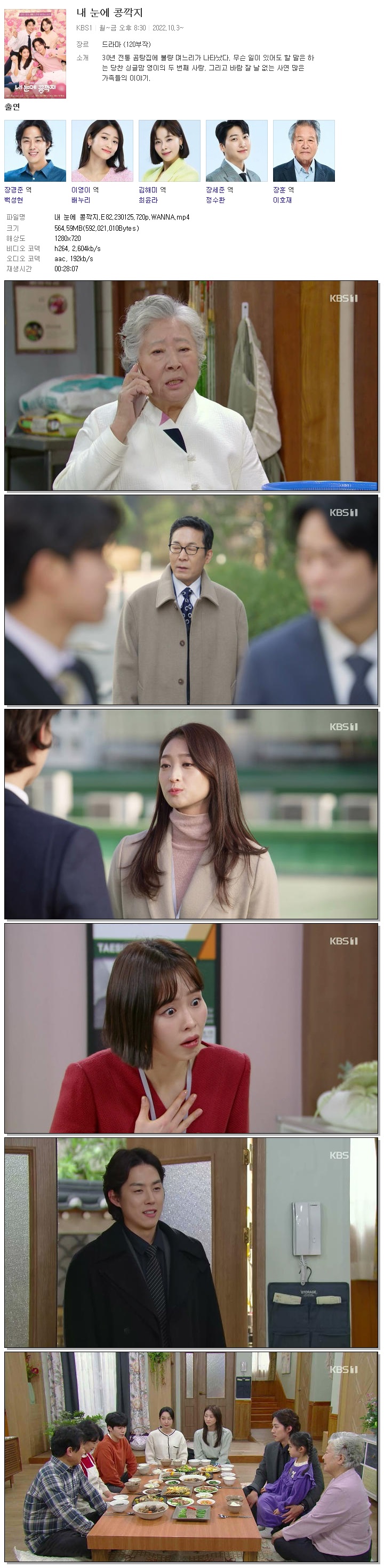 | 내 눈에 콩깍지.E82.230125.720p.WANNA.mp4 | 564.6 M | 00:28:07 | 1280x720 |