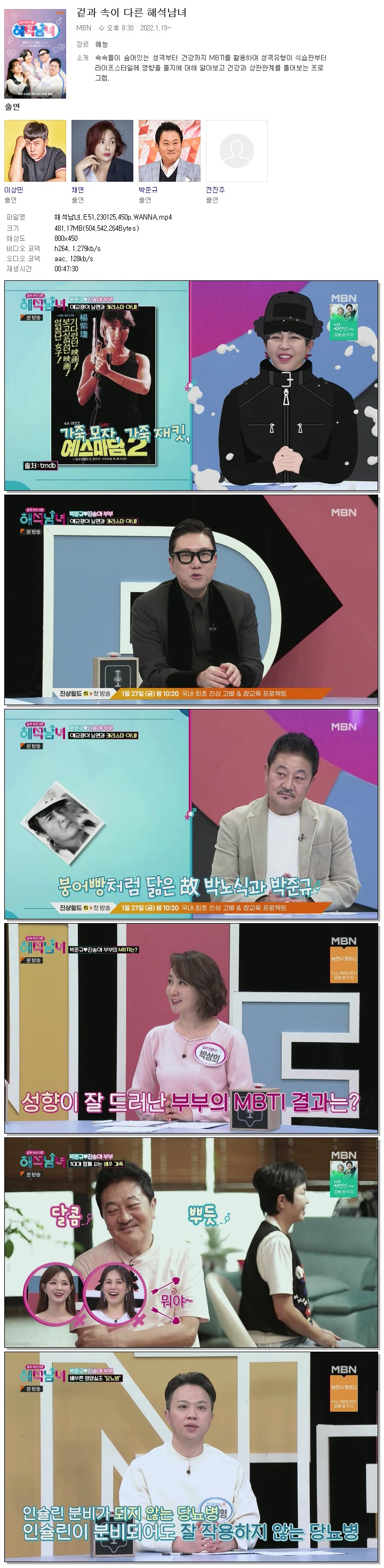 | 해석남녀.E51.230125.450p.WANNA.mp4 | 481.2 M | 00:47:30 | 800x450 |