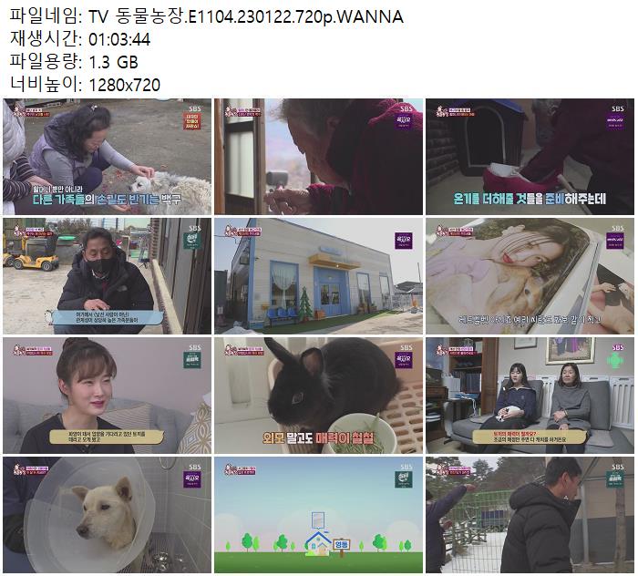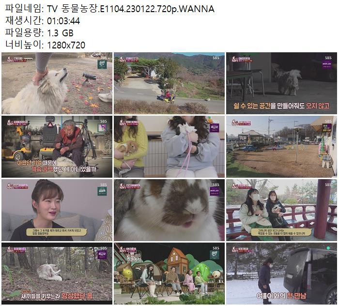 TV 동물농장.E1104.230122.720p.WANNA.mp4 1.3 G 01:03:44 1280x720