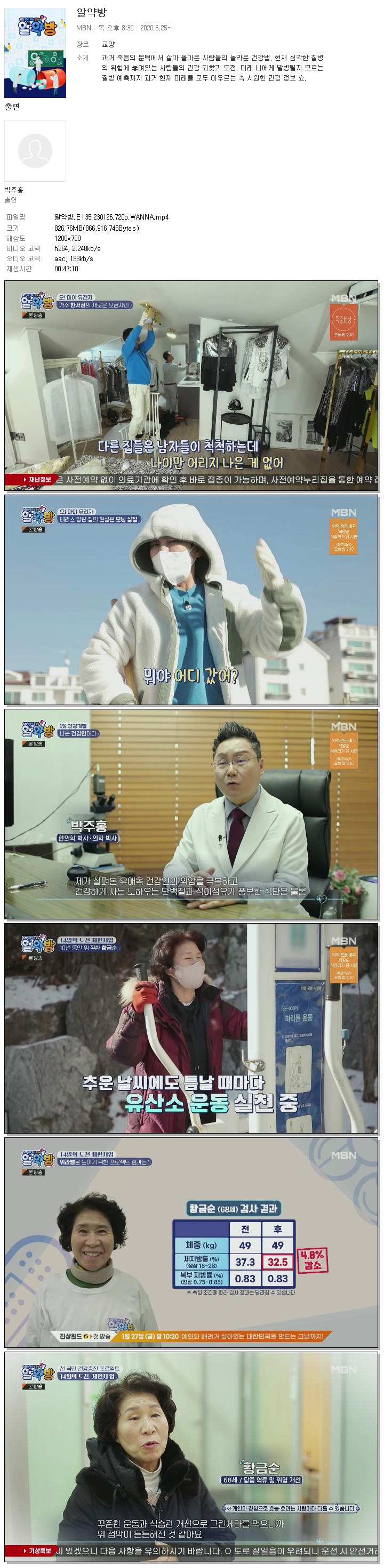 | 알약방.E135.230126.720p.WANNA.mp4 | 826.8 M | 00:47:10 | 1280x720 |
