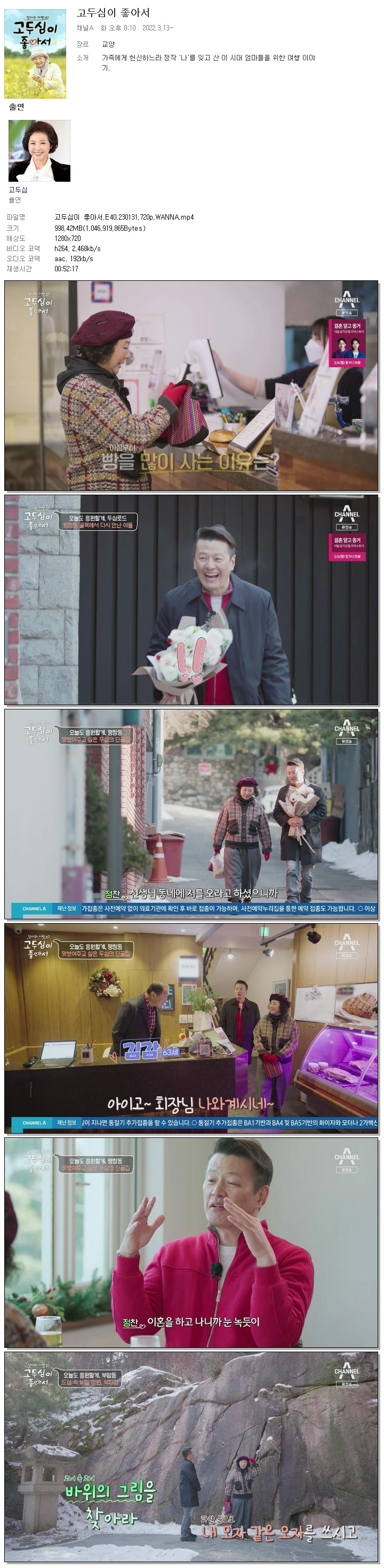| 고두심이 좋아서.E40.230131.720p.WANNA.mp4 | 998.4 M | 00:52:17 | 1280x720 |
