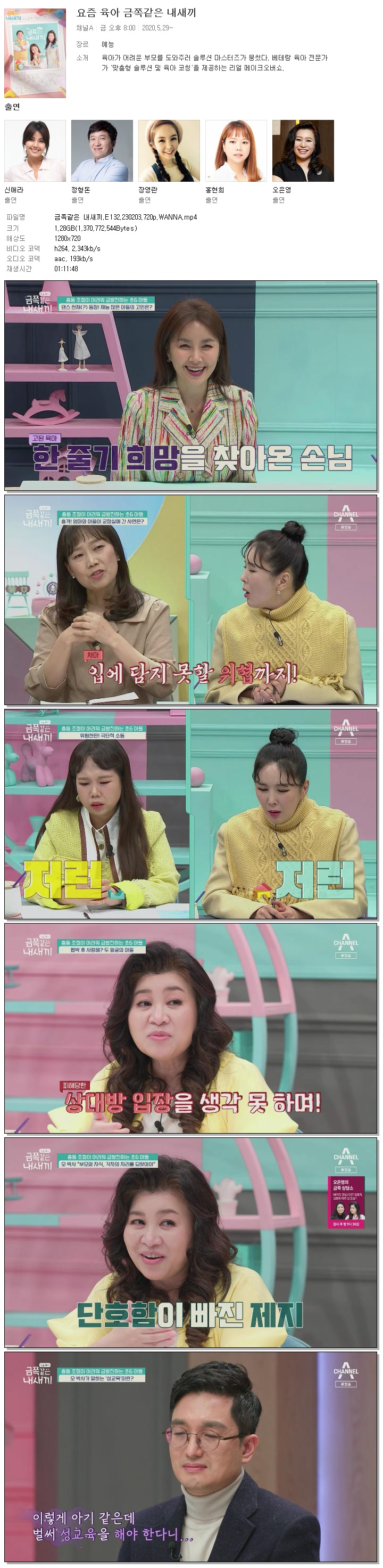 | 금쪽같은 내새끼.E132.230203.720p.WANNA.mp4 | 1.3 G | 01:11:48 | 1280x720 |