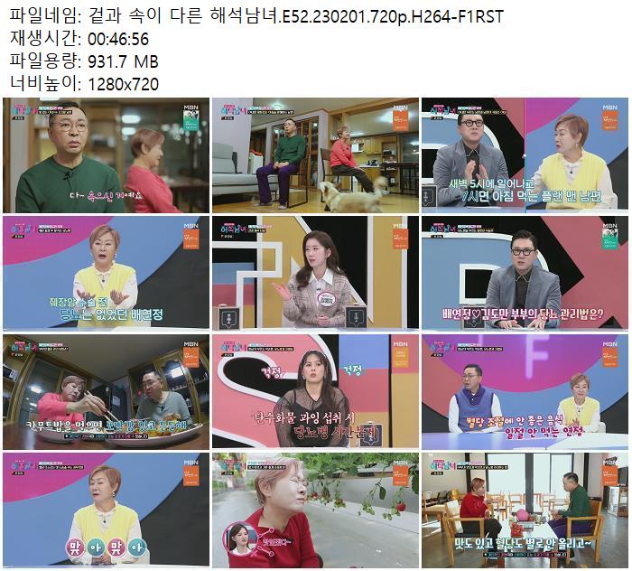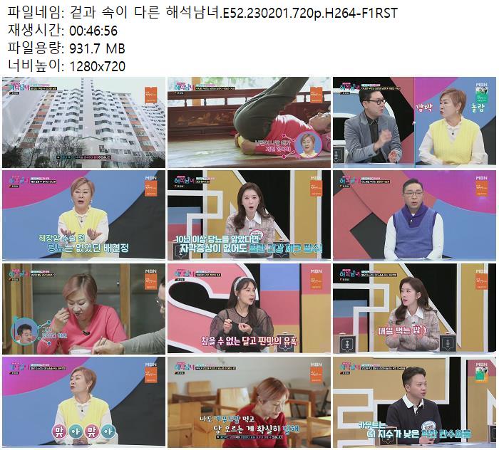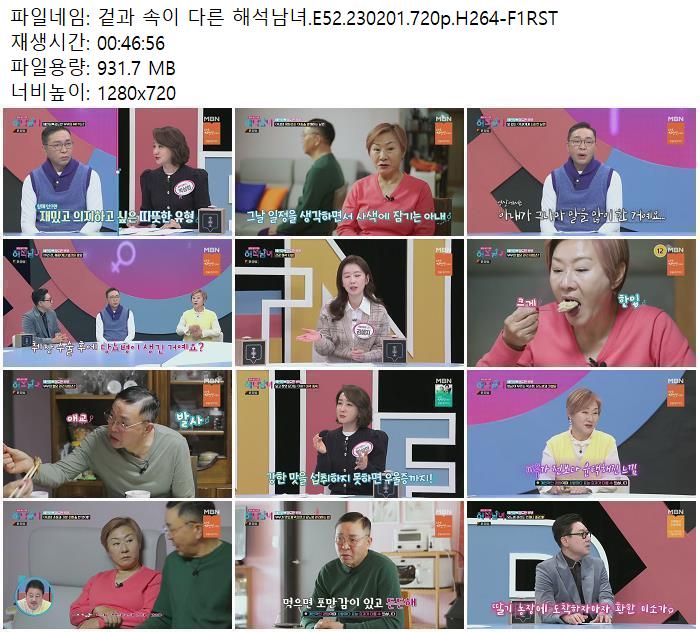 | 겉과 속이 다른 해석남녀.E52.230201.720p.H264-F1RST.mp4 | 931.7 M | 00:46:56 | 1280x720 |