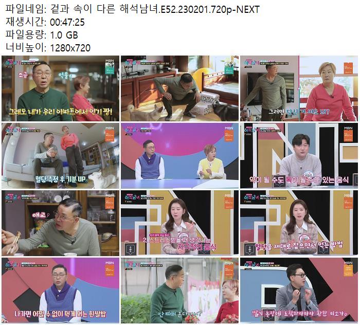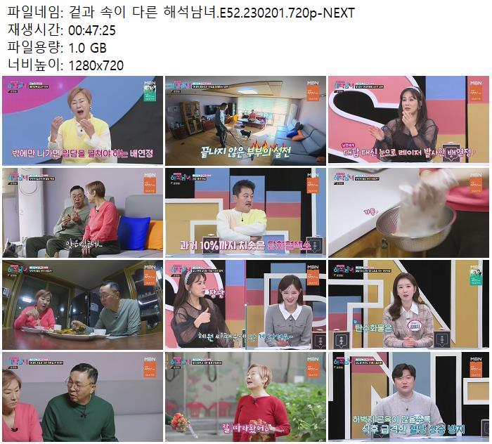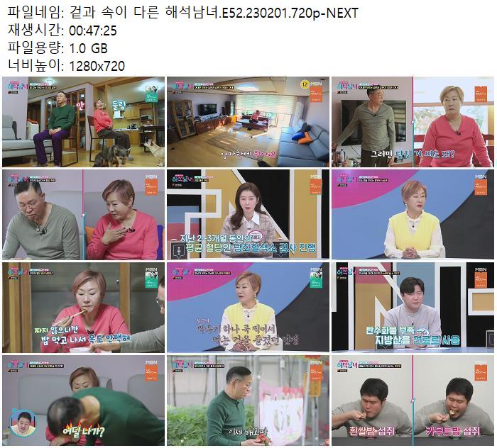 | 겉과 속이 다른 해석남녀.E52.230201.720p-NEXT.mp4 | 1 G | 00:47:25 | 1280x720 |