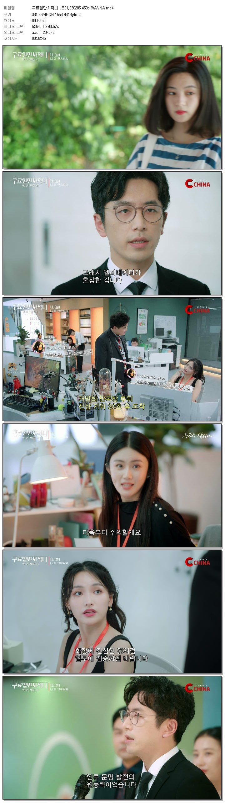 | 구료일만차적니 .E01.230205.450p.WANNA.mp4 | 331.5 M | 00:32:45 | 800x450 |