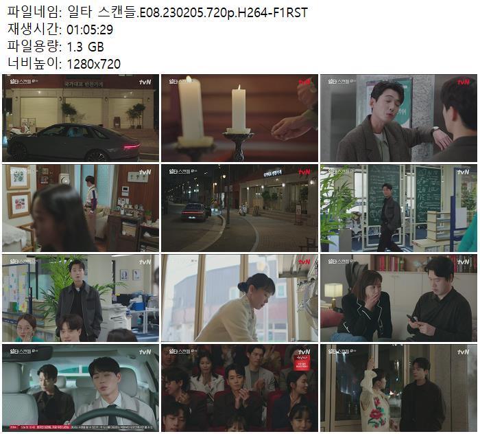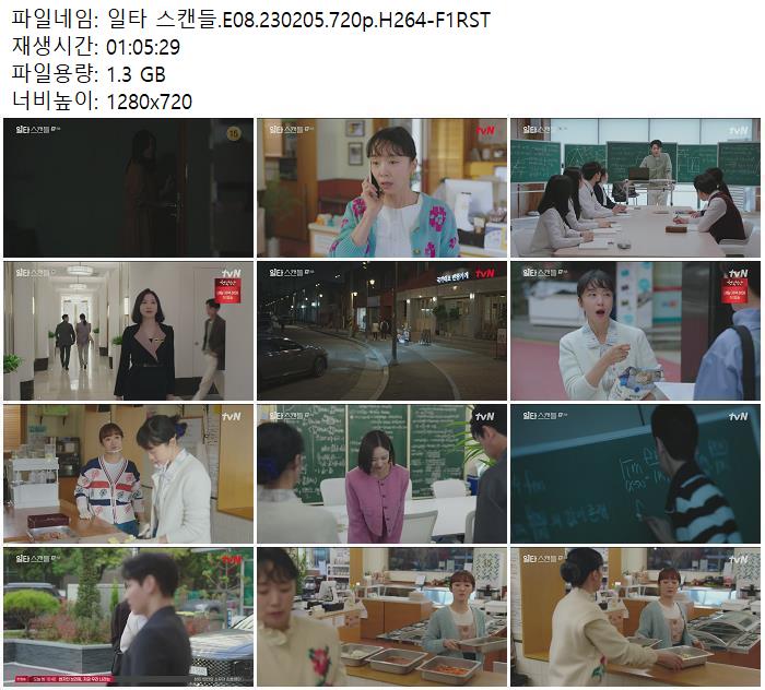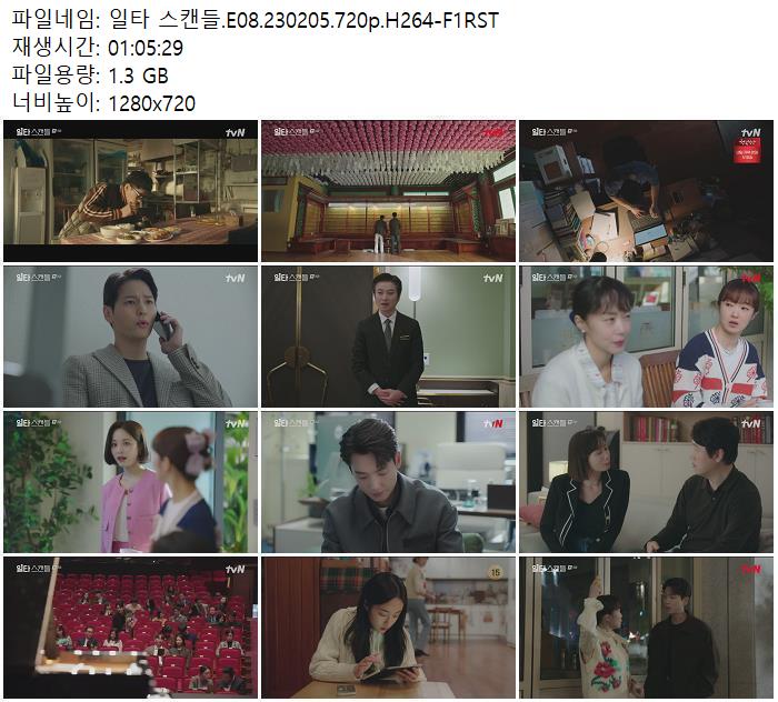 | 일타 스캔들.E08.230205.720p.H264-F1RST.mp4 | 1.3 G | 01:05:29 | 1280x720 |
