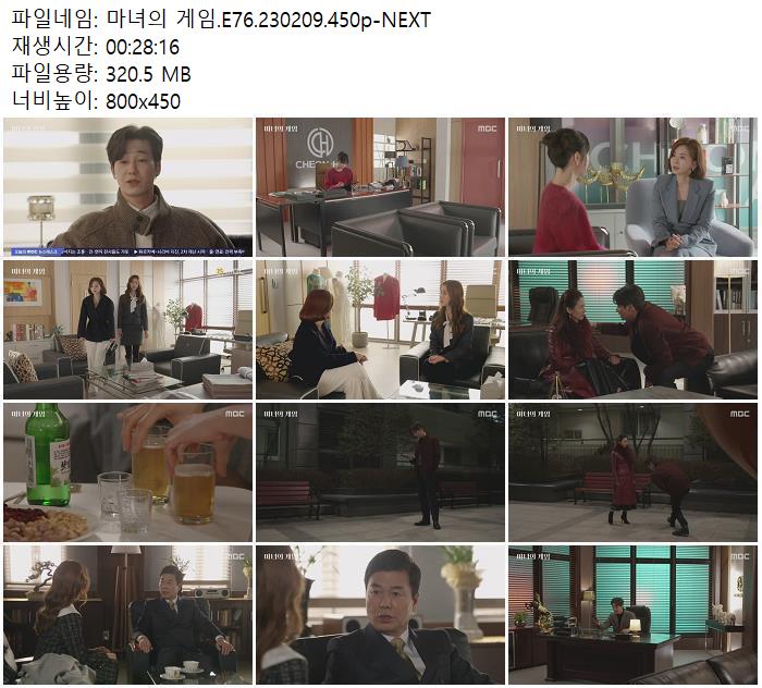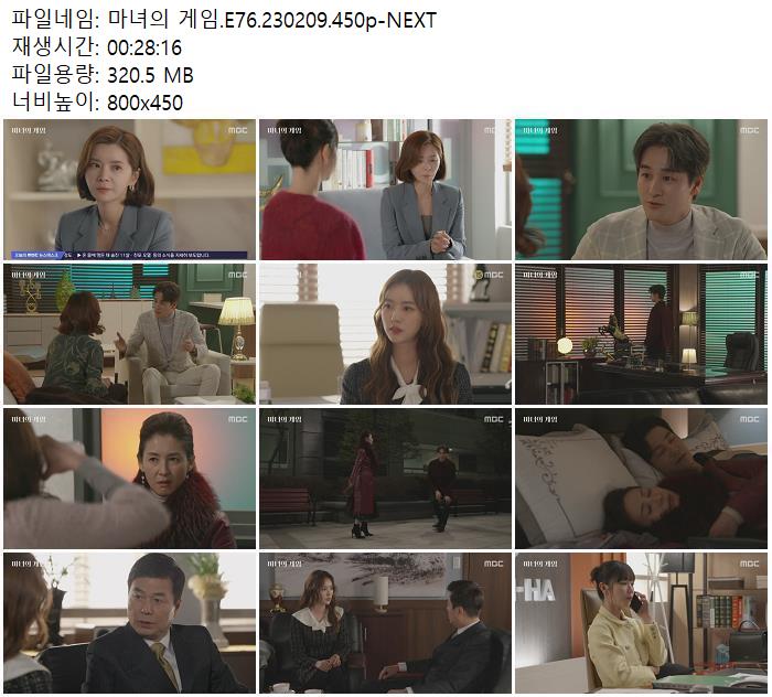 | 마녀의 게임.E76.230209.450p-NEXT.mp4 | 320.5 M | 00:28:16 | 800x450 |