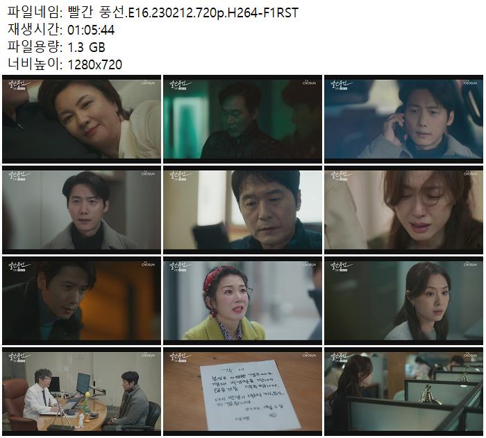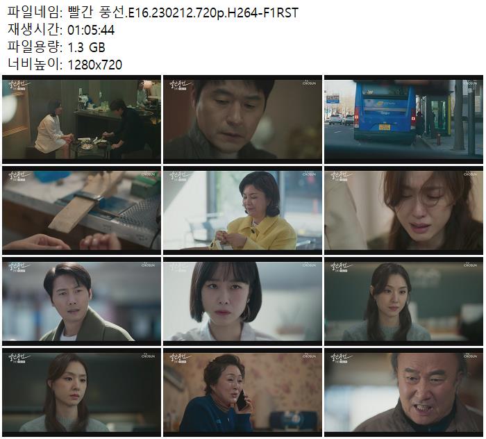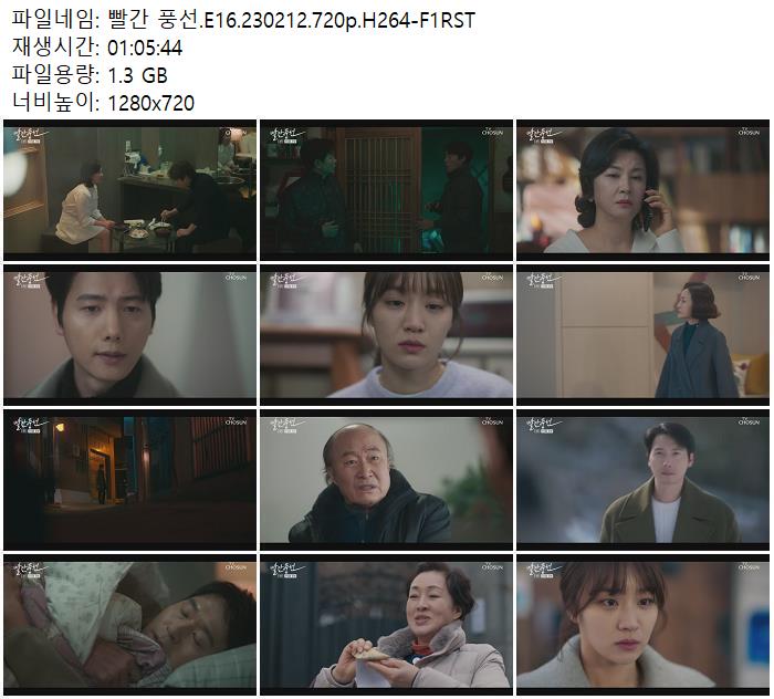 | 빨간 풍선.E16.230212.720p.H264-F1RST.mp4 | 1.3 G | 01:05:44 | 1280x720 |