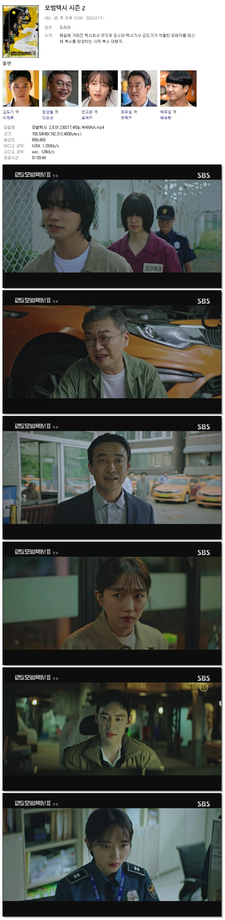 | 모범택시 2.E01.230217.450p.WANNA.mp4 | 708.5 M | 01:09:44 | 800x450 |