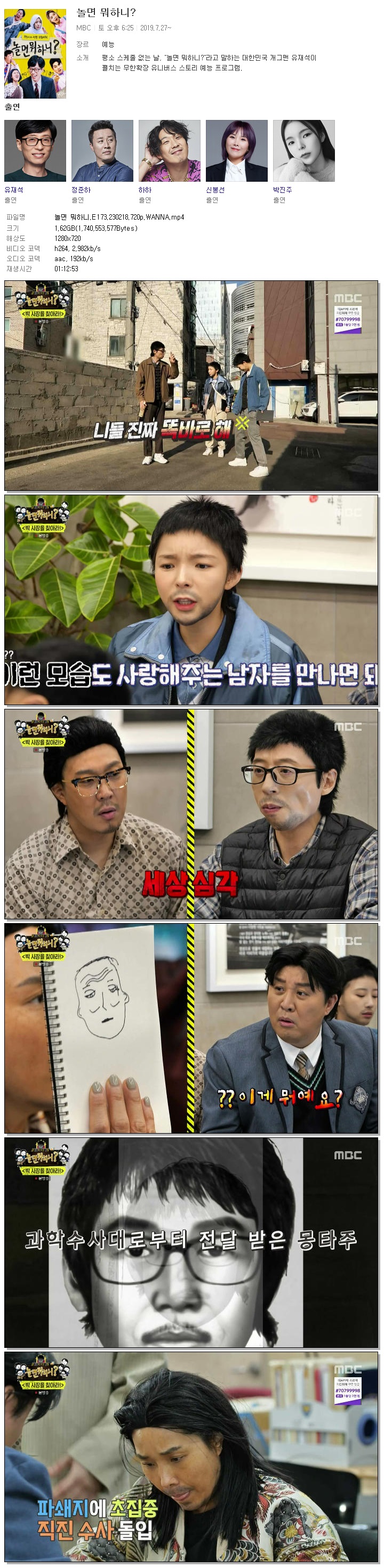 | 놀면 뭐하니.E173.230218.720p.WANNA.mp4 | 1.6 G | 01:12:53 | 1280x720 |