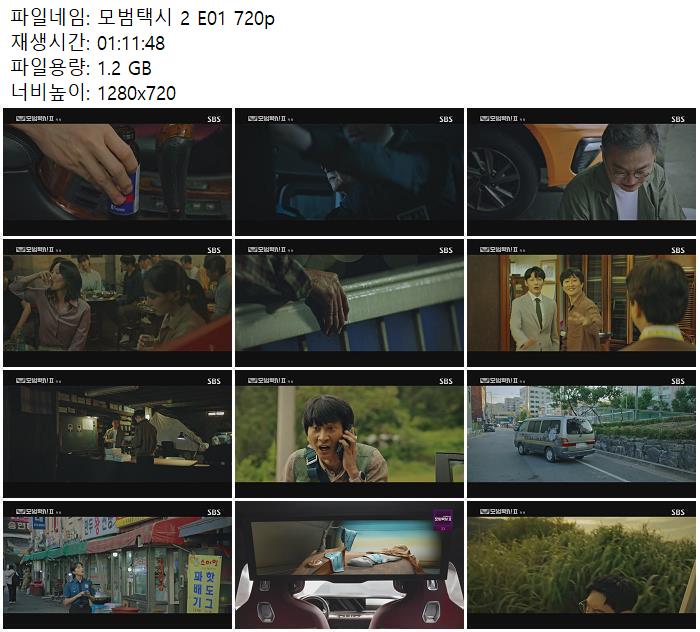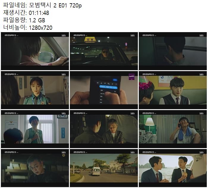 | 모범택시 2 E01 720p.mp4 | 1.2 G | 01:11:48 | 1280x720 |