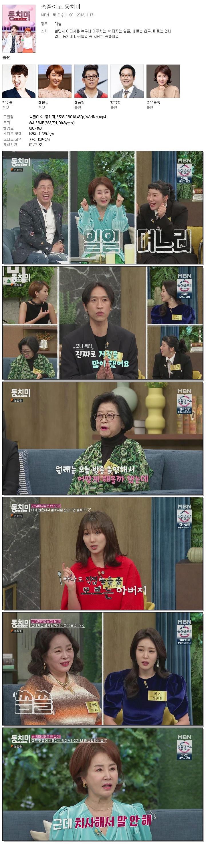 | 속풀이쇼 동치미.E535.230218.450p.WANNA.mp4 | 841.8 M | 01:22:32 | 800x450 |