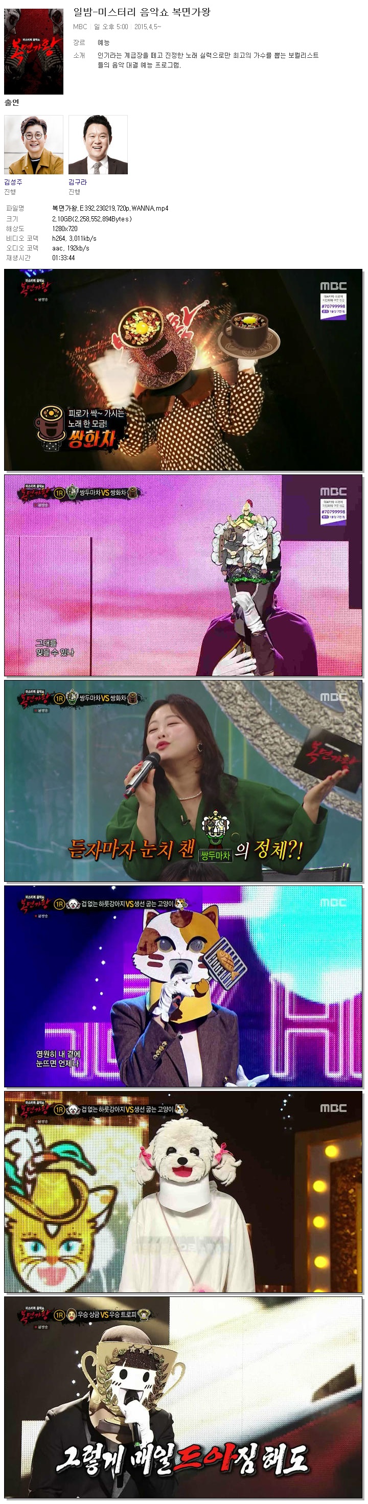 | 복면가왕.E392.230219.720p.WANNA.mp4 | 2.1 G | 01:33:44 | 1280x720 |