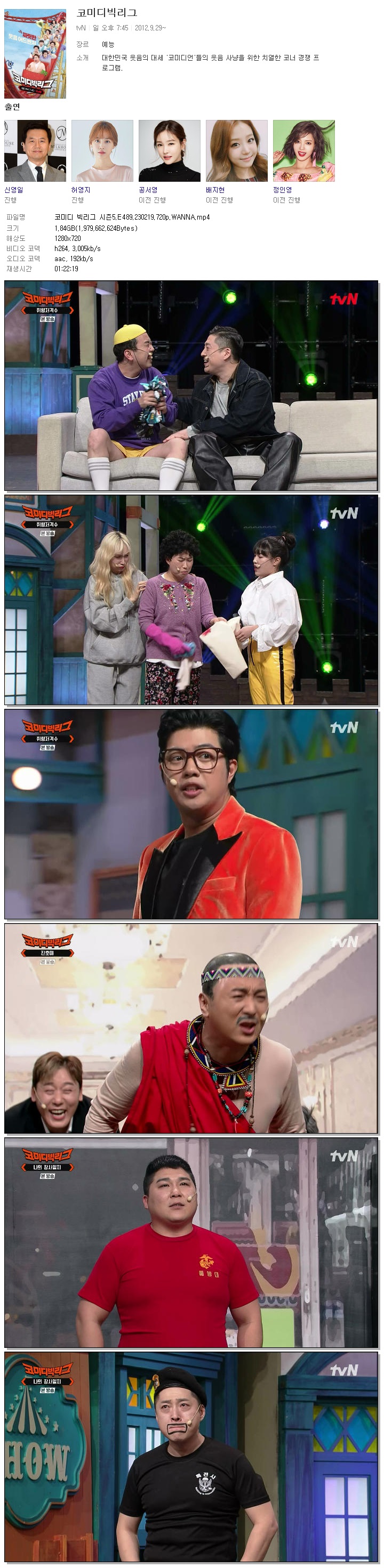| 코미디 빅리그 시즌5.E489.230219.720p.WANNA.mp4 | 1.8 G | 01:22:19 | 1280x720 |