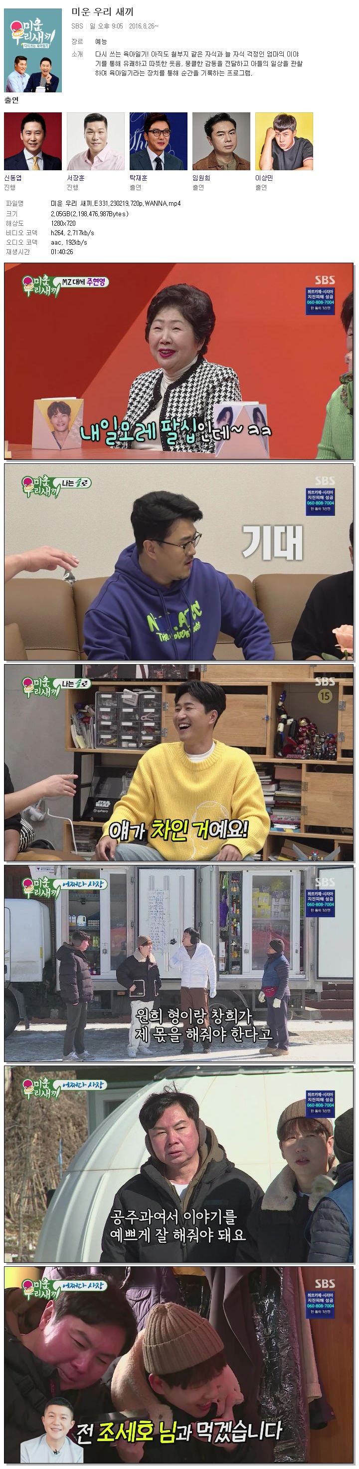 미운 우리 새끼.E331.230219.720p.WANNA.mp4 2 G 01:40:26 1280x720