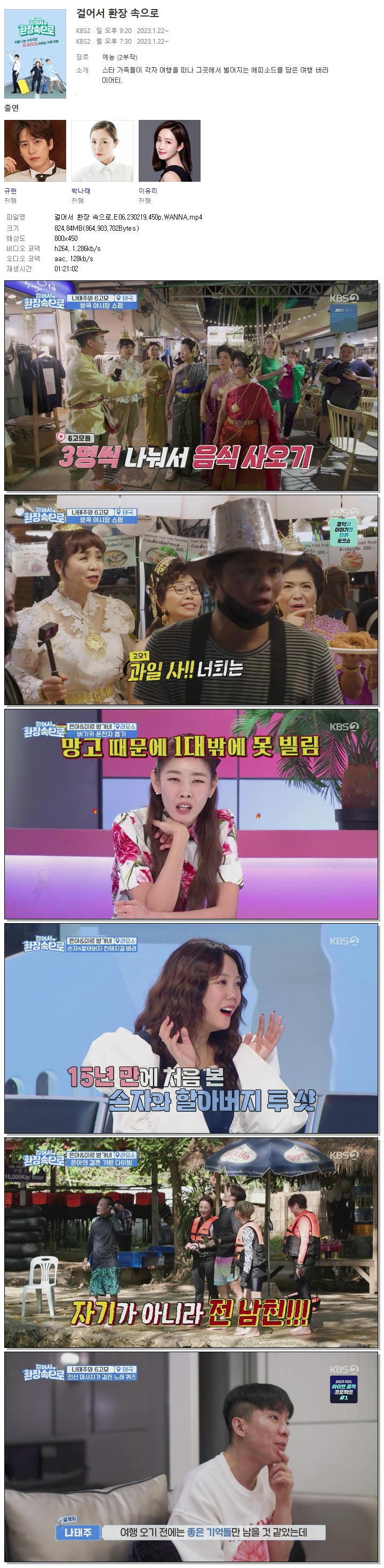 | 걸어서 환장 속으로.E06.230219.450p.WANNA.mp4 | 824.8 M | 01:21:02 | 800x450 |