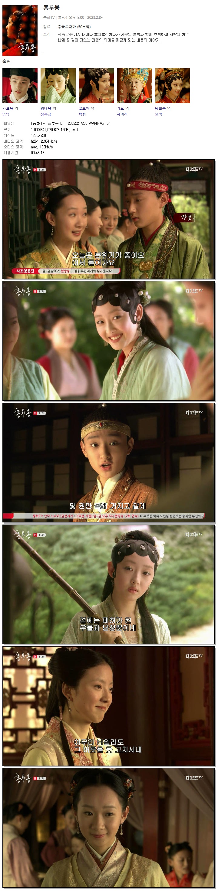 [중화TV] 홍루몽.E11.230222.720p.WANNA.mp4 1021.1 M 00:45:16 1280x720