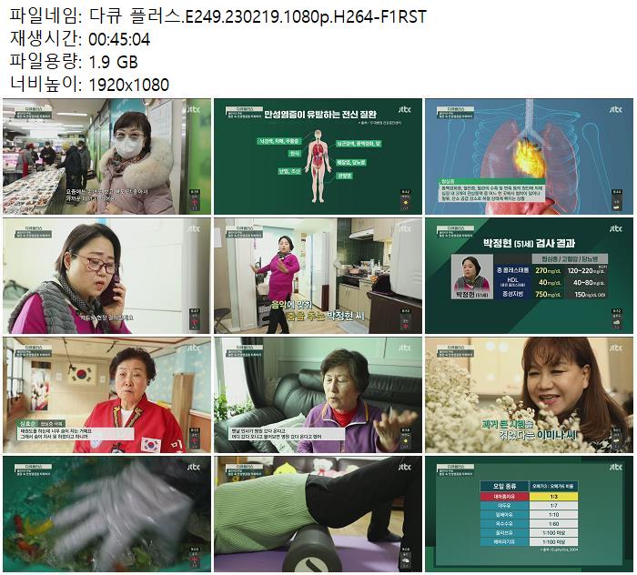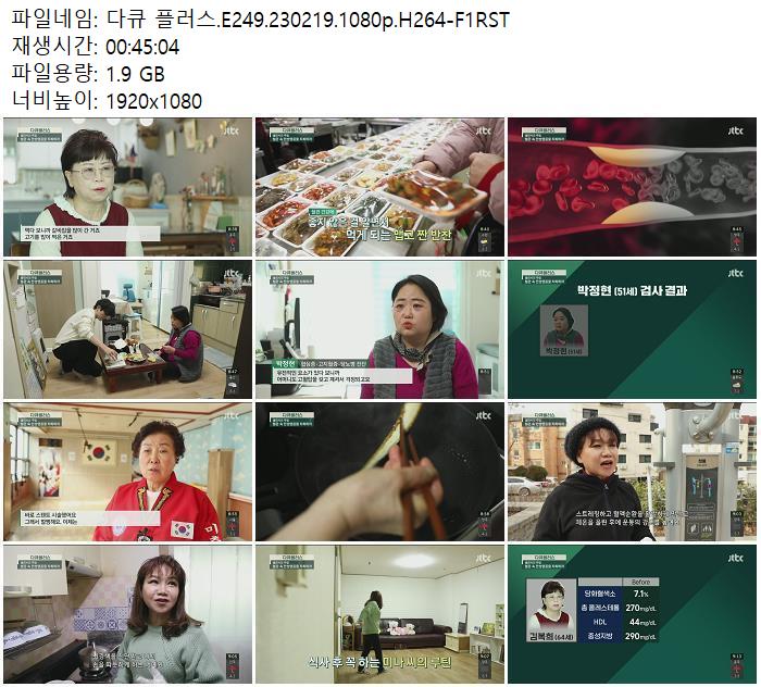 | 다큐 플러스.E249.230219.1080p.H264-F1RST.mp4 | 1.9 G | 00:45:04 | 1920x1080 |