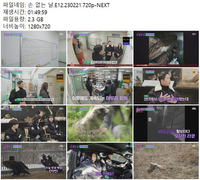| 손 없는 날.E12.230221.720p-NEXT.mp4 | 2.3 G | 01:49:59 | 1280x720 |