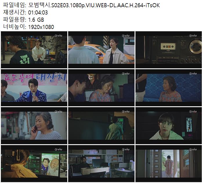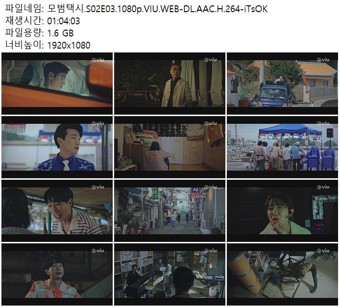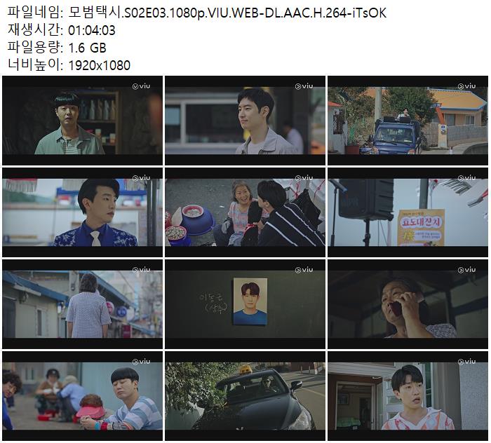 | 모범택시.S02E03.1080p.VIU.WEB-DL.AAC.H.264-iTsOK.mkv | 1.6 G | 01:04:03 | 1920x1080 |