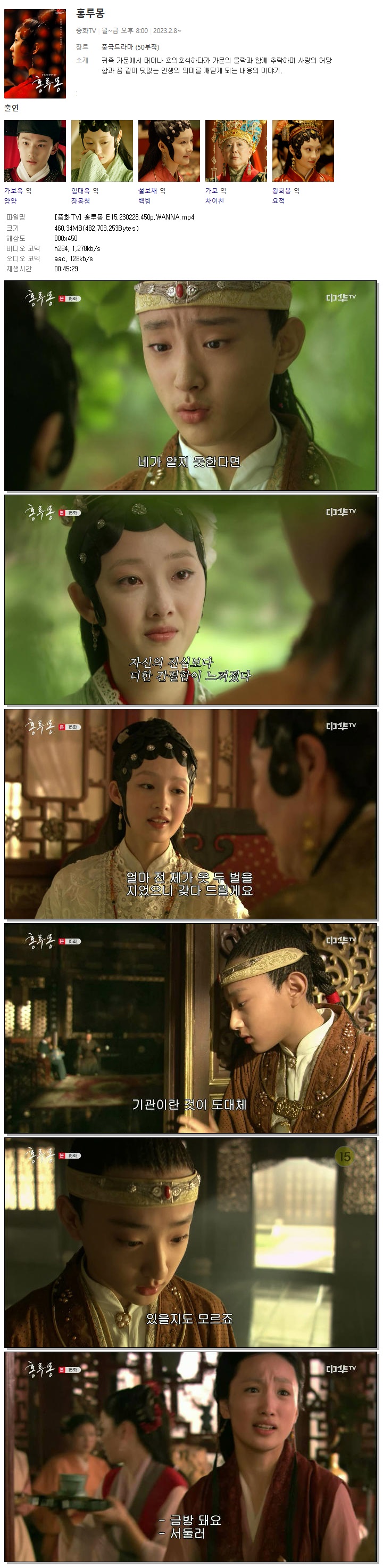 | [중화TV] 홍루몽.E15.230228.450p.WANNA.mp4 | 460.3 M | 00:45:29 | 800x450 |