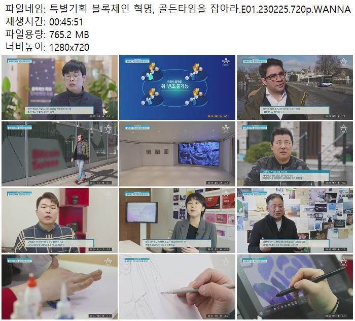 | 특별기획 블록체인 혁명, 골든타임을 잡아라.E01.230225.720p.WANNA.mp4 | 765.2 M | 00:45:51 | 1280x720 |