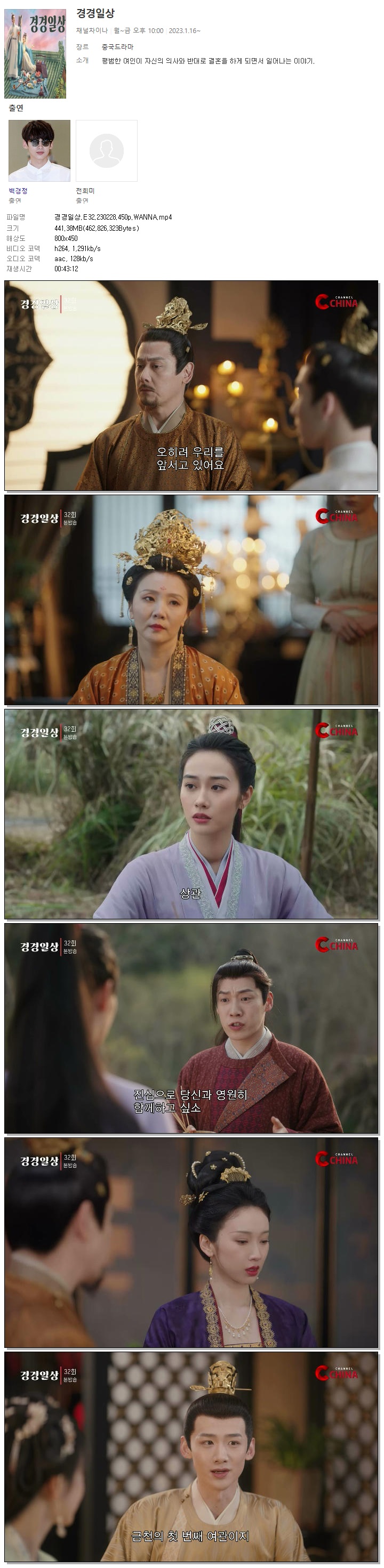 | 경경일상.E32.230228.450p.WANNA.mp4 | 441.4 M | 00:43:12 | 800x450 |