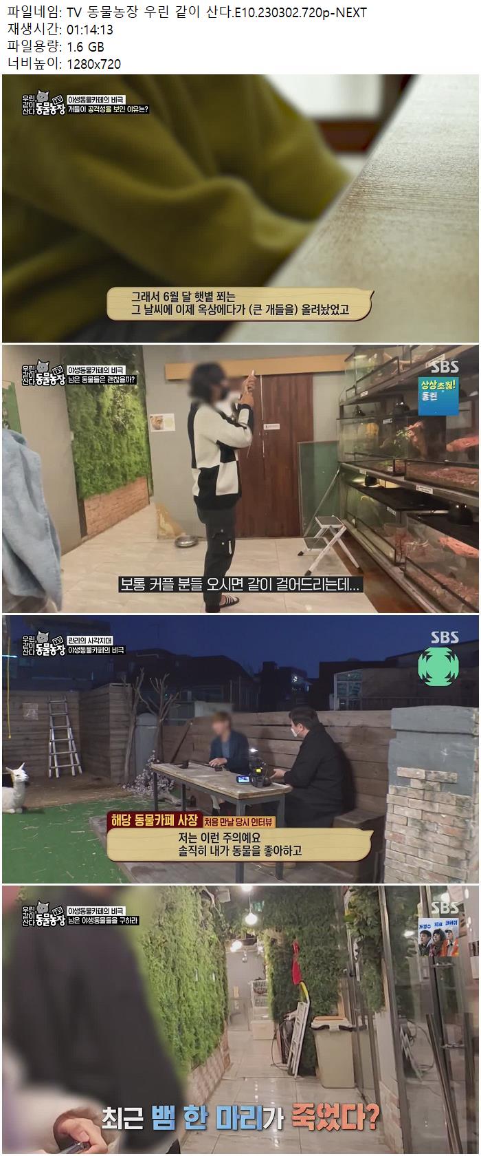 TV 동물농장 우린 같이 산다.E10.230302.720p-NEXT.mp4 1.6 G 01:14:13 1280x720