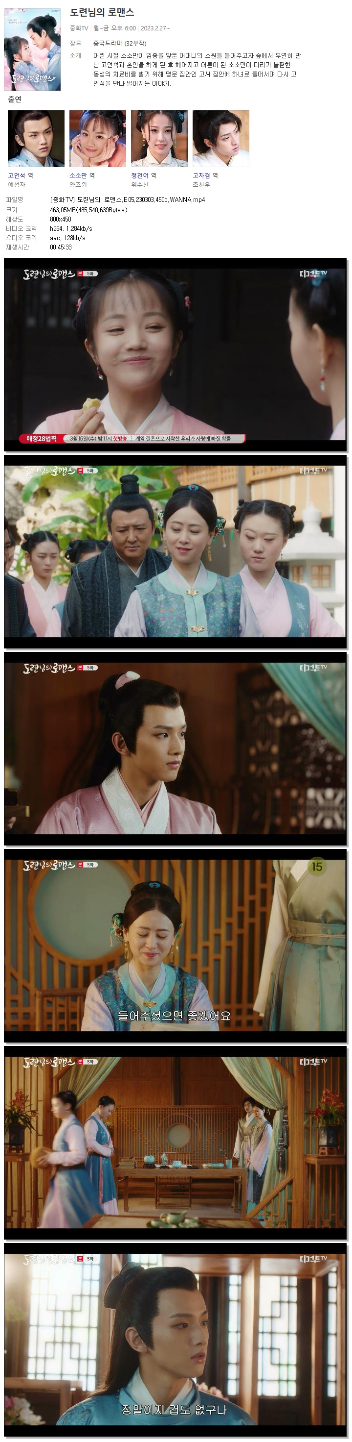 | [중화TV] 도련님의 로맨스.E05.230303.450p.WANNA.mp4 | 463 M | 00:45:33 | 800x450 |