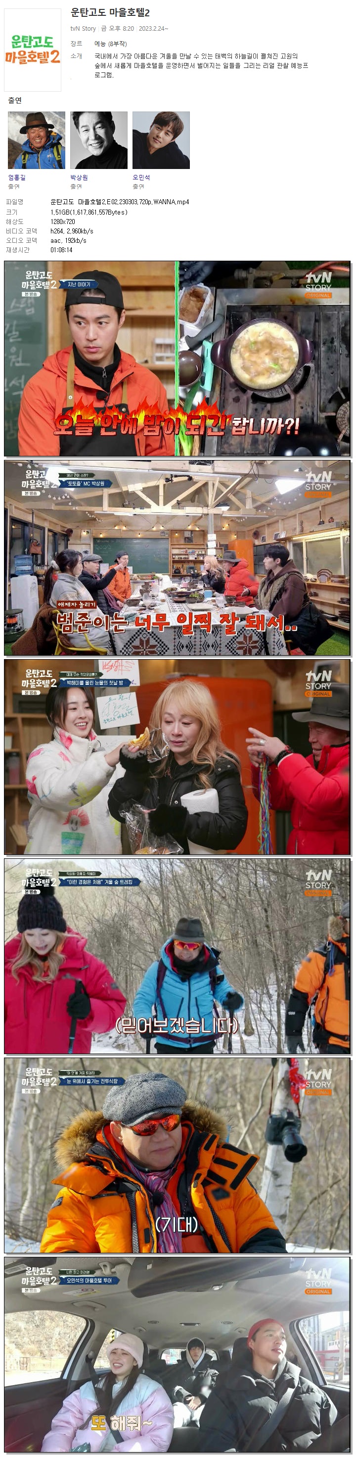 | 운탄고도 마을호텔2.E02.230303.720p.WANNA.mp4 | 1.5 G | 01:08:14 | 1280x720 |