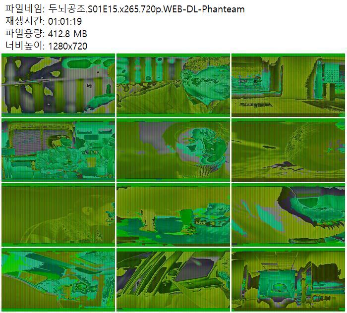 | 두뇌공조.S01E15.x265.720p.WEB-DL-Phanteam.mkv | 412.8 M | 01:01:19 | 1280x720 |