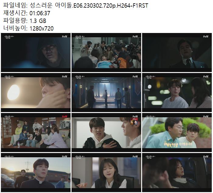 | 성스러운 아이돌.E06.230302.720p.H264-F1RST.mp4 | 1.3 G | 01:06:37 | 1280x720 |