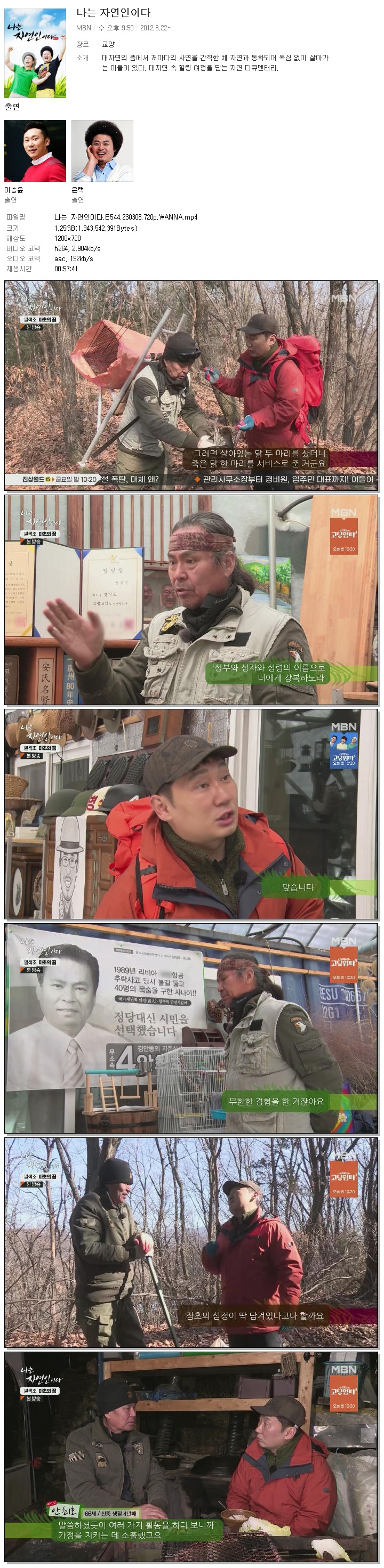 나는 자연인이다.E544.230308.720p.WANNA.mp4 1.3 G 00:57:41 1280x720