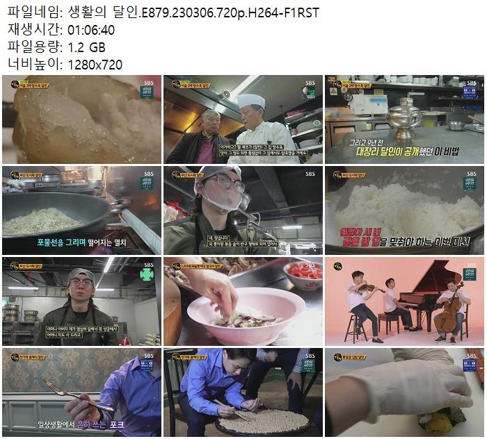 | 생활의 달인.E879.230306.720p.H264-F1RST.mp4 | 1.2 G | 01:06:40 | 1280x720 |