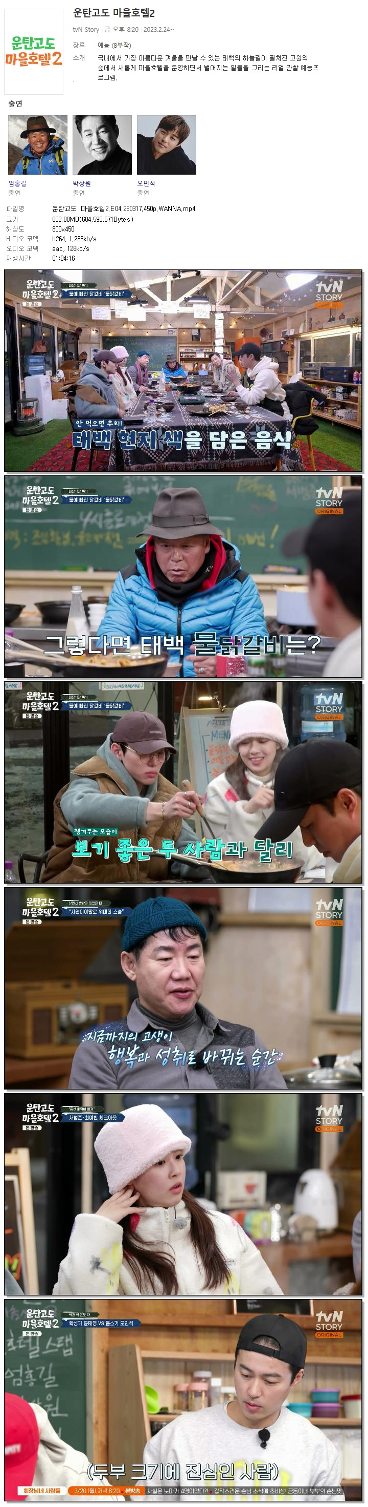 | 운탄고도 마을호텔2.E04.230317.450p.WANNA.mp4 | 652.9 M | 01:04:16 | 800x450 |