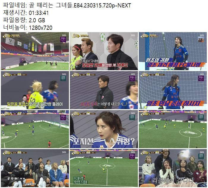 | 골 때리는 그녀들.E84.230315.720p-NEXT.mp4 | 2 G | 01:33:41 | 1280x720 |