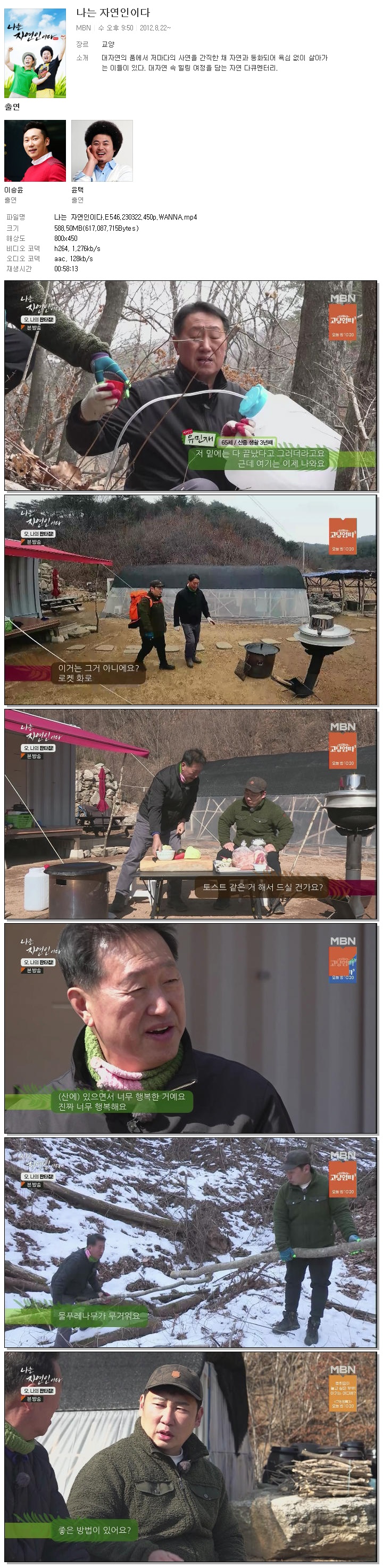 | 나는 자연인이다.E546.230322.450p.WANNA.mp4 | 588.5 M | 00:58:13 | 800x450 |