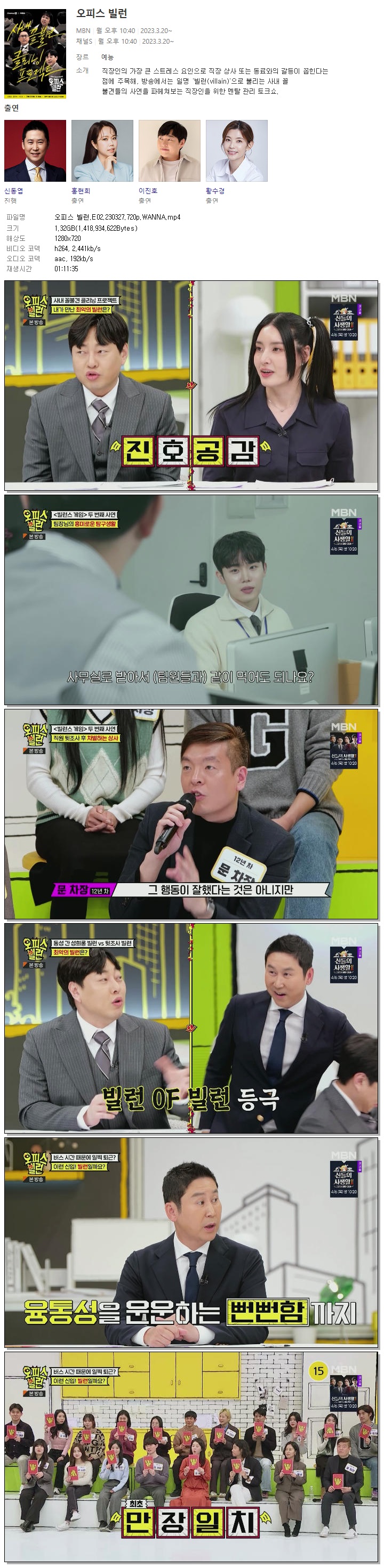 | 오피스 빌런.E02.230327.720p.WANNA.mp4 | 1.3 G | 01:11:35 | 1280x720 |