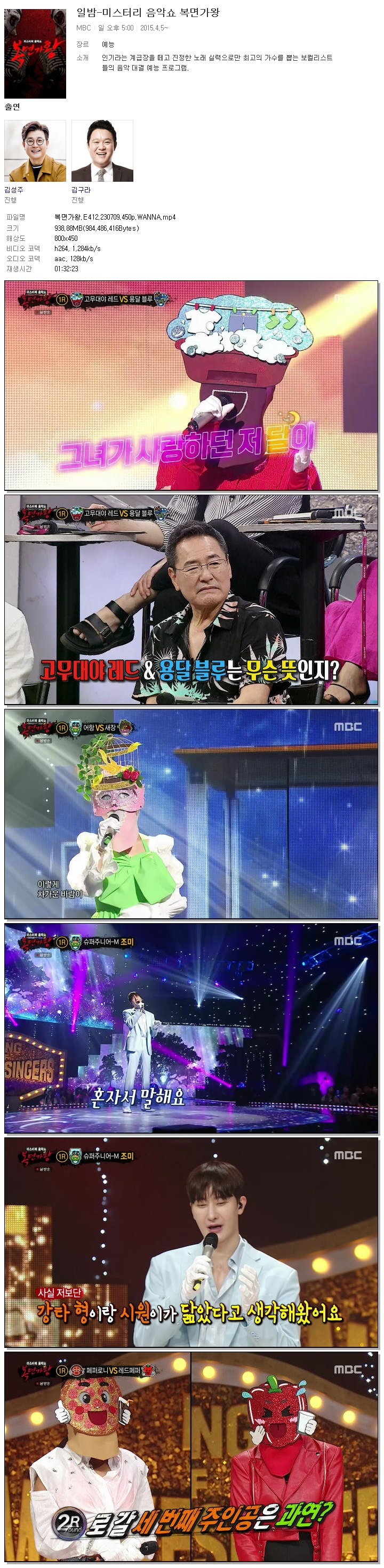 | 복면가왕.E412.230709.450p.WANNA.mp4 | 938.9 M | 01:32:23 | 800x450 |