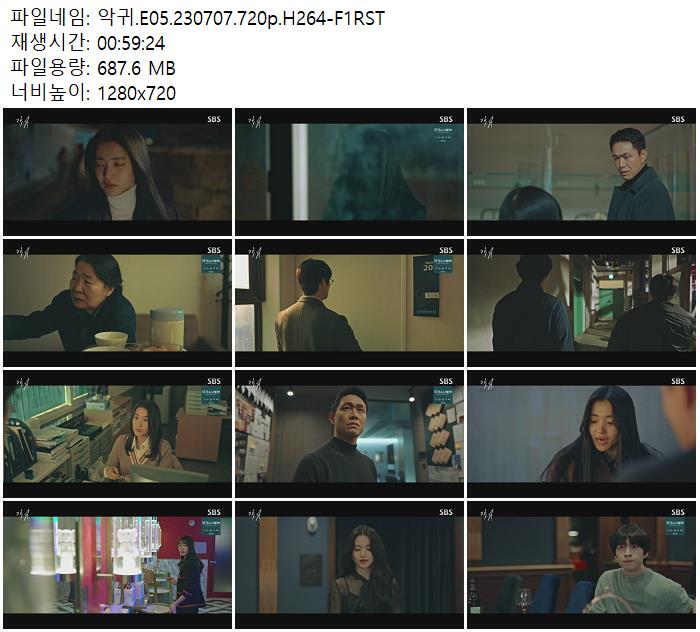 | 악귀.E05.230707.720p.H264-F1RST.mp4 | 687.6 M | 00:59:24 | 1280x720 |