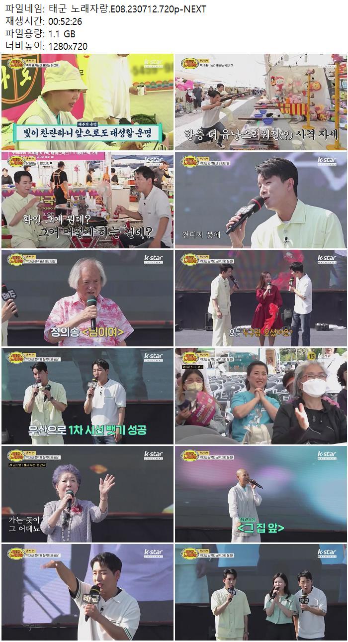 | 태군 노래자랑.E08.230712.720p-NEXT.mp4 | 1.1 G | - | 1280x720 |