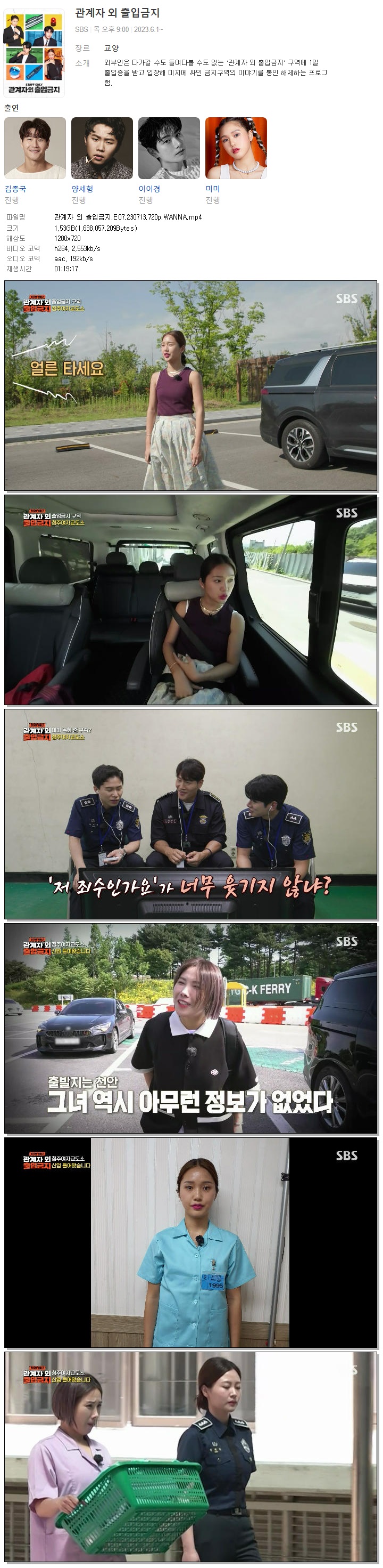 | 관계자 외 출입금지.E07.230713.720p.WANNA.mp4 | 1.5 G | 01:19:17 | 1280x720 |