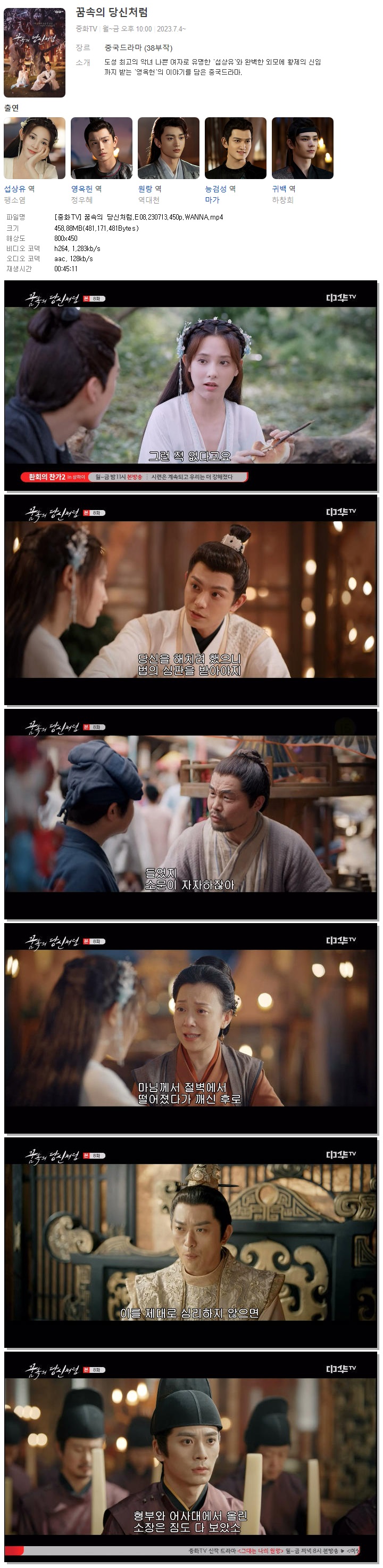 [중화TV] 꿈속의 당신처럼.E08.230713.450p.WANNA.mp4 458.9 M 00:45:11 800x450