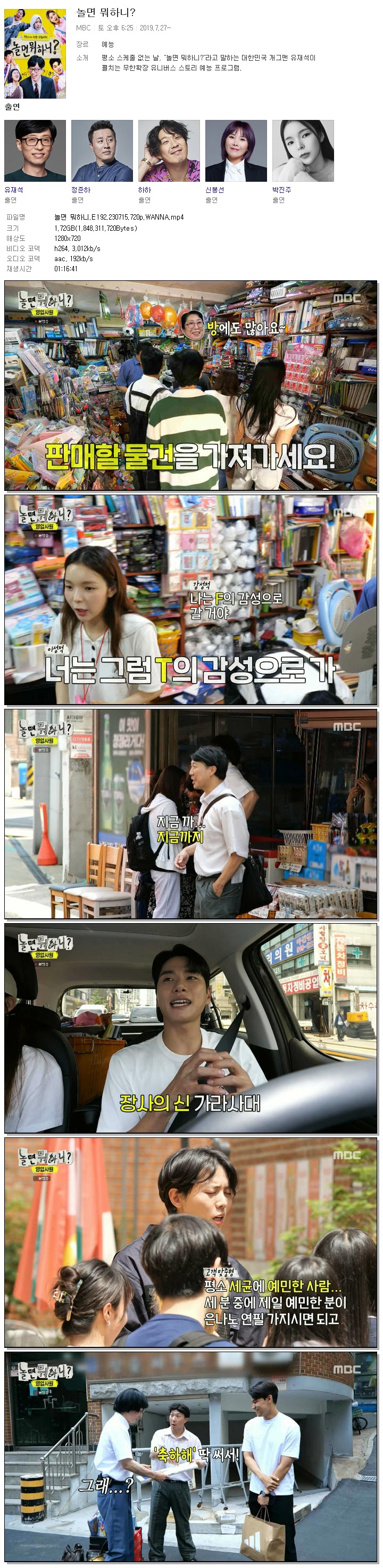 놀면 뭐하니.E192.230715.720p.WANNA.mp4 1.7 G 01:16:41 1280x720