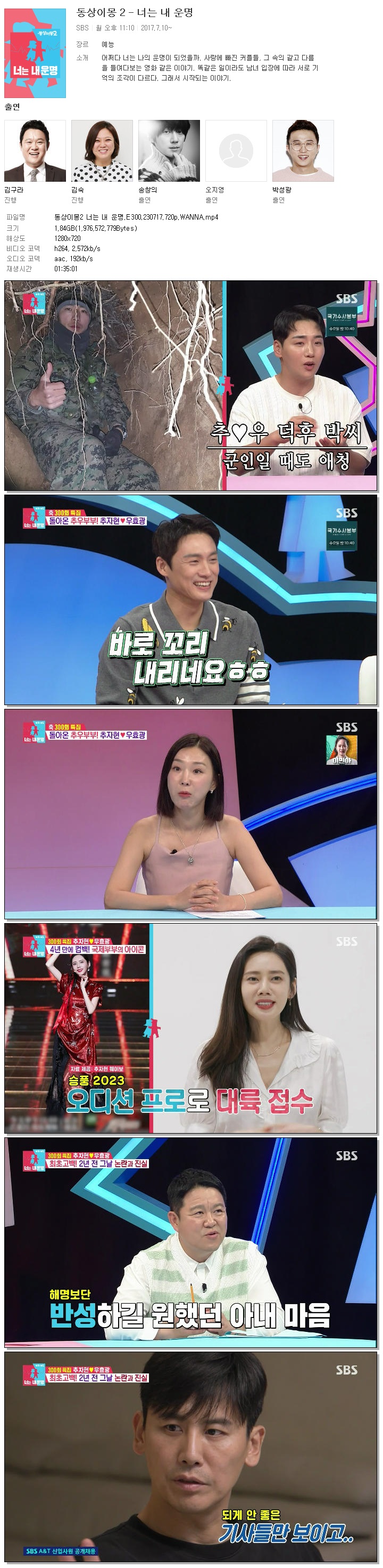 동상이몽2 너는 내 운명.E300.230717.720p.WANNA.mp4 1.8 G 01:35:01 1280x720
