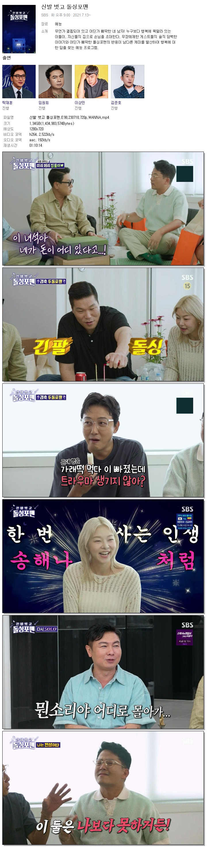 신발 벗고 돌싱포맨.E98.230718.720p.WANNA.mp4 1.3 G 01:10:14 1280x720
