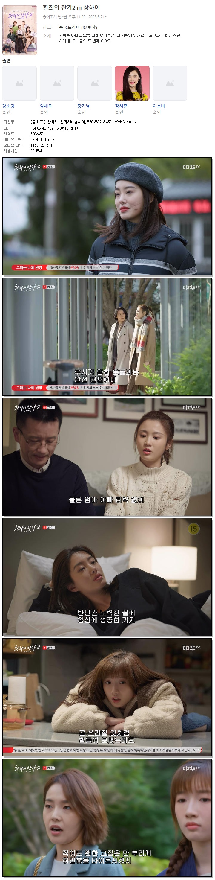 [중화TV] 환희의 찬가2 in 상하이.E20.230718.450p.WANNA.mp4 464.9 M 00:45:41 800x450